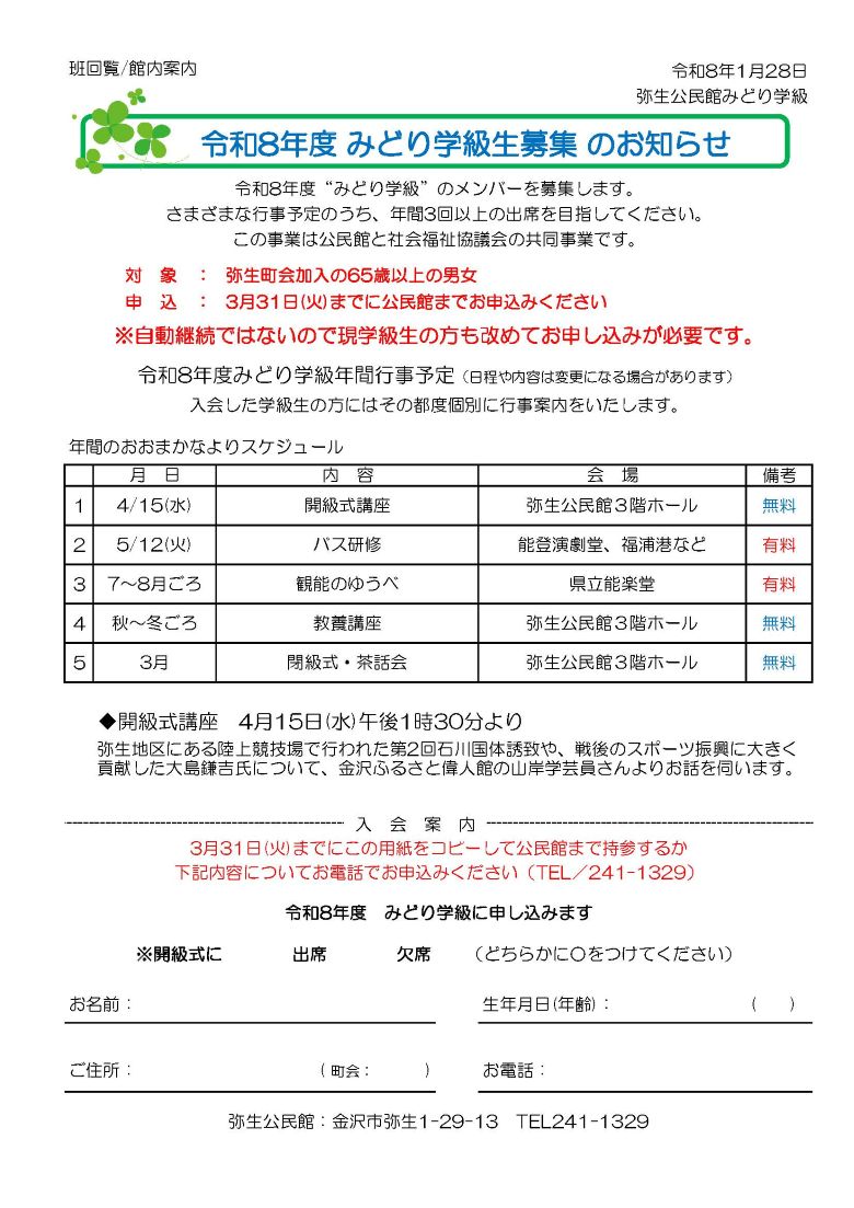 ※みどり学級は、弥生社会福祉協議会との共催事業です。