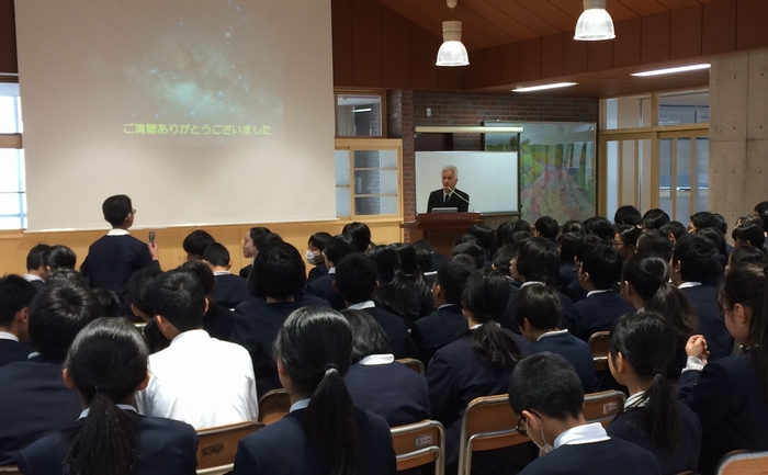中学生に向けて宇宙の謎などをお話していただきました。